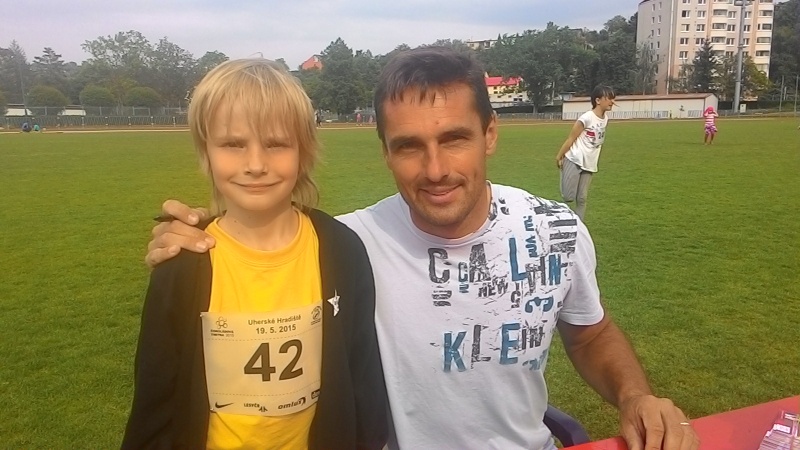 Na závodech v Uh.Hradišti nás reprezentoval jediný běžec a to Jan Tančinec. Ten v závodě na 100 metrů skončil na 10. místě, což není špatné umístění vzhledem k tomu, že na startu bylo téměř třicet závodníků. Pro Jendu ale bylo určitě daleko větším zážitkem setkání s olympijským vítězem, mistrem světa a světovým rekordmanem v desetiboji Romanem Šebrlem. Ten se s Jendou vyfotil a popřál mu mnoho dalších sportovních úspěchů.