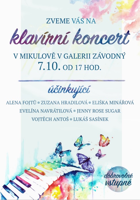 Dobrovolné vstupné bude věnováno na nákup hudebních nástrojů pro ZŠ Dolní Věstonice.